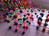 Los alumnos y alumnas de 1º ESO realizaron estos modelos sobre cómo es a nivel atómico la sal común que usamos diariamente. Usaron materiales muy sencillos: pajitas y plastilina