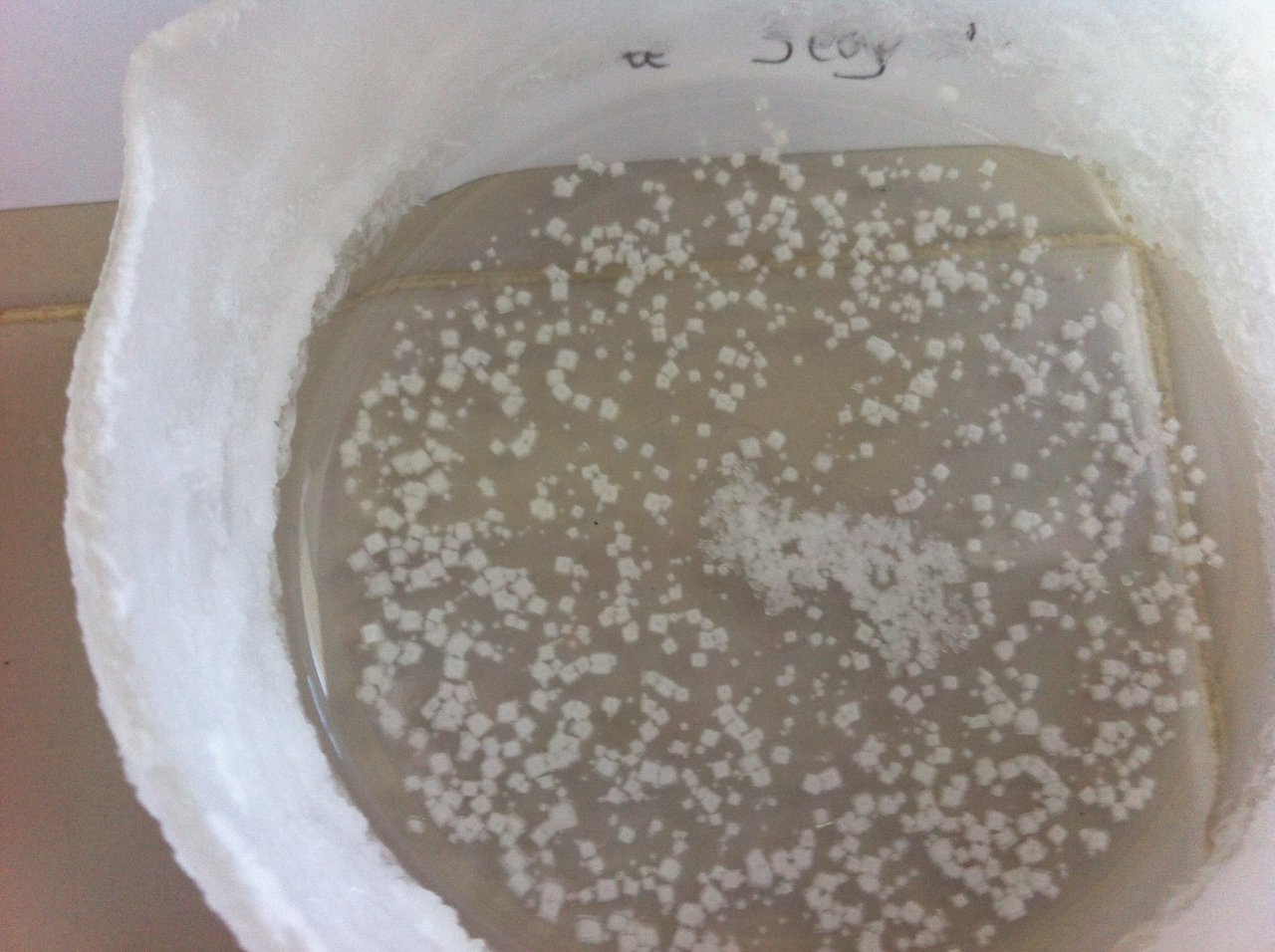 Los alumnos/as de 3º ESO realizaron estas fantásticas cristalizaciones en las que se puede ver el maravilloso orden de la materia cristalina. Una simple disolución de sal en agua y al cabo de los días la evaporación hace el resto...
