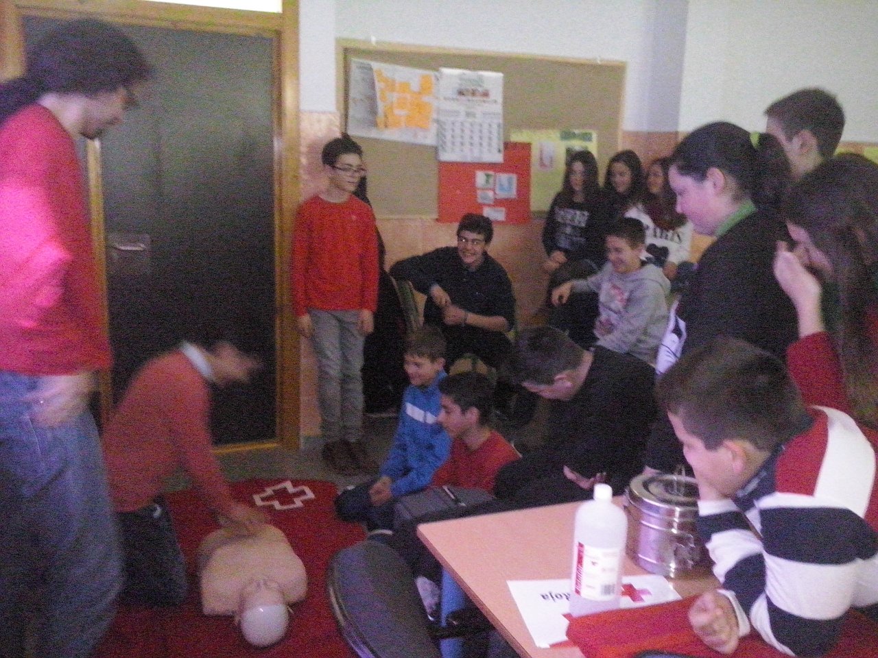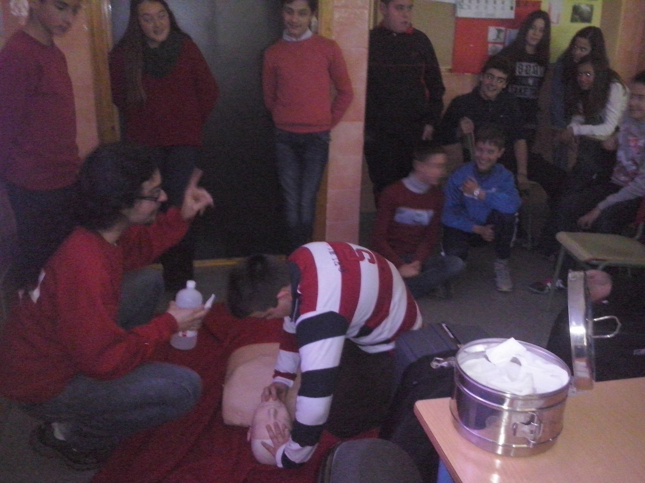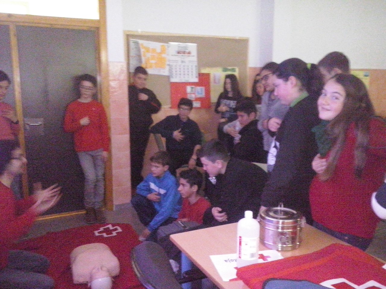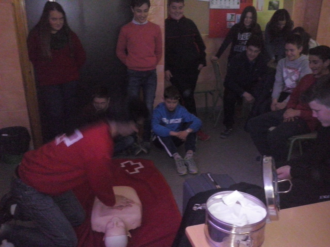 El pasado 24 de febrero el alumnado de 1º de ESO recibió una charla por parte de la cruz roja y también realizaron prácticas. Aprendieron nociones básicas de primeros auxilios para saber como actuar en caso necesario.
