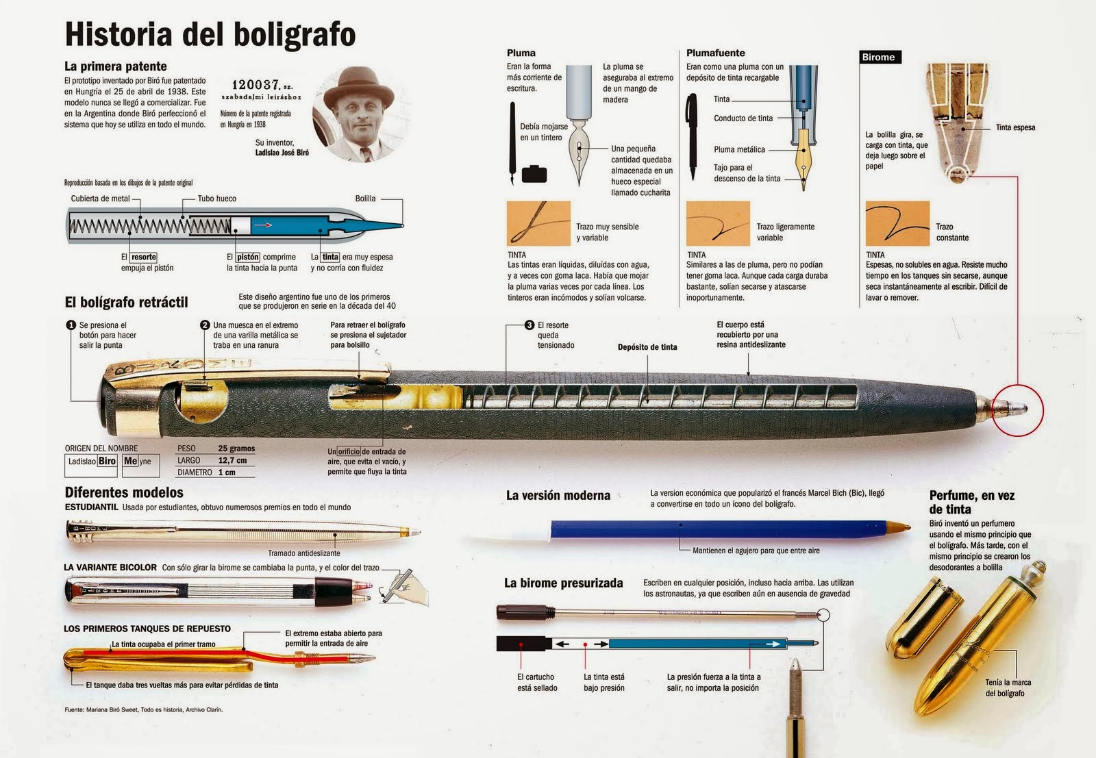 El bolígrafo es un objeto cotidiano que dio fama internacional a su inventor, Ladislao Biro, y que cambió la escritura. Los documentos abordan la historia y el análisis tecnológico del mismo.