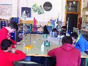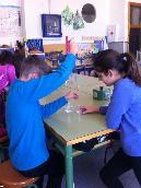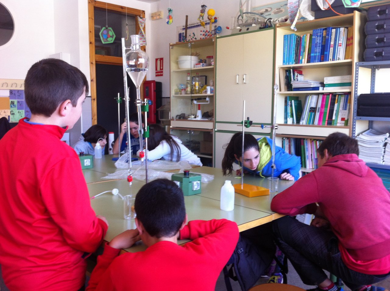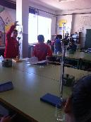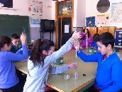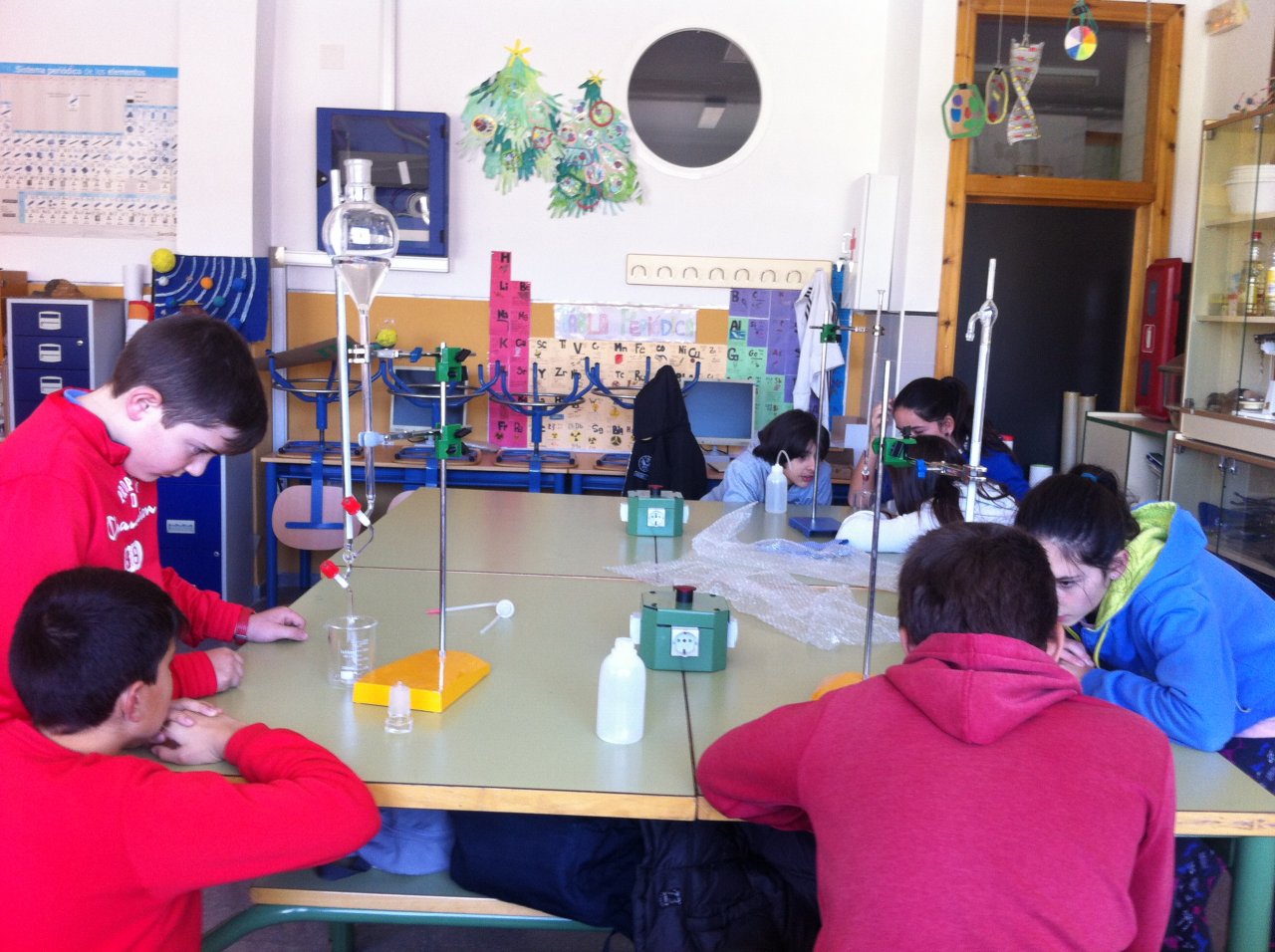 Los alumnos de 1º ESO utilizan diversos instrumentos para medir volúmenes de agua: pipetas y buretas.