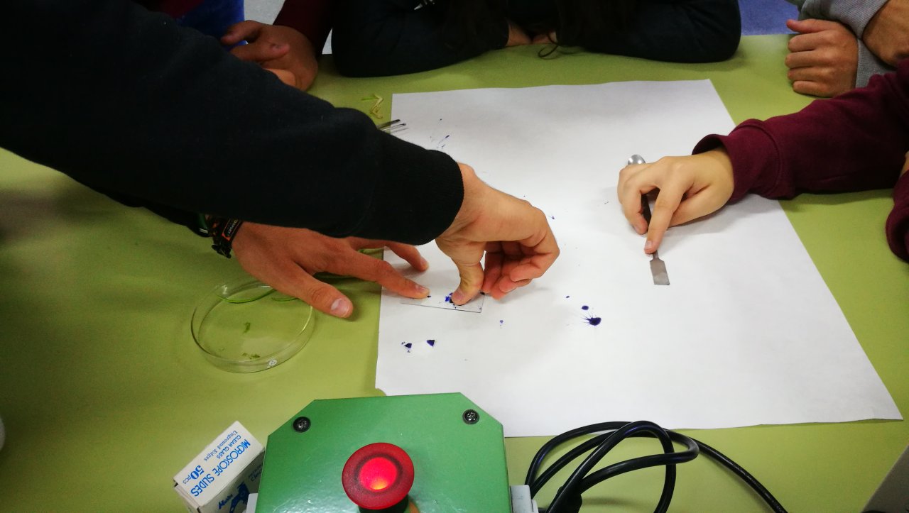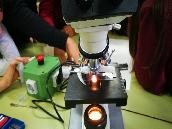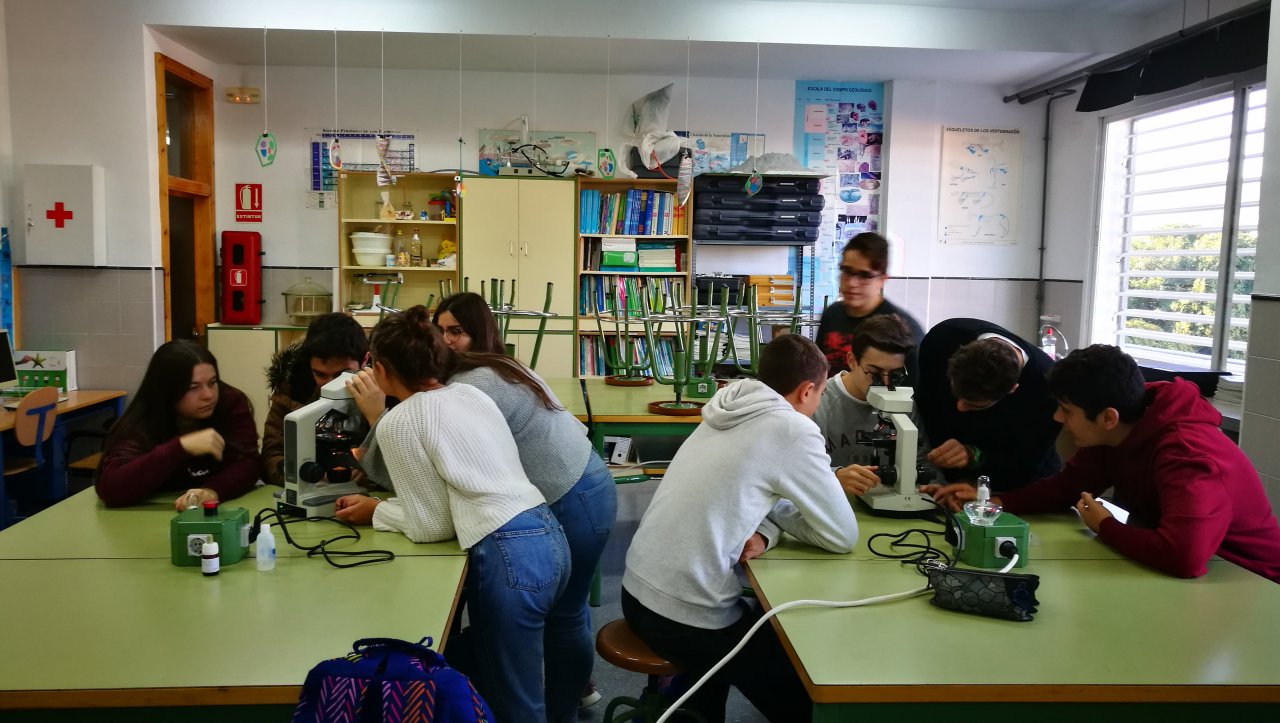 En esta práctica, los/as alumnos/as de 4º de ESO realizaron la tinción y preparación de una muestra de tejido vegetal. El objetivo: localizar en el microscopio óptico células que estén realizando mitosis. La muestra se obtuvo a partir de tejido germinal de tallos de cebolla que trajo uno de los alumnos, Manuel.