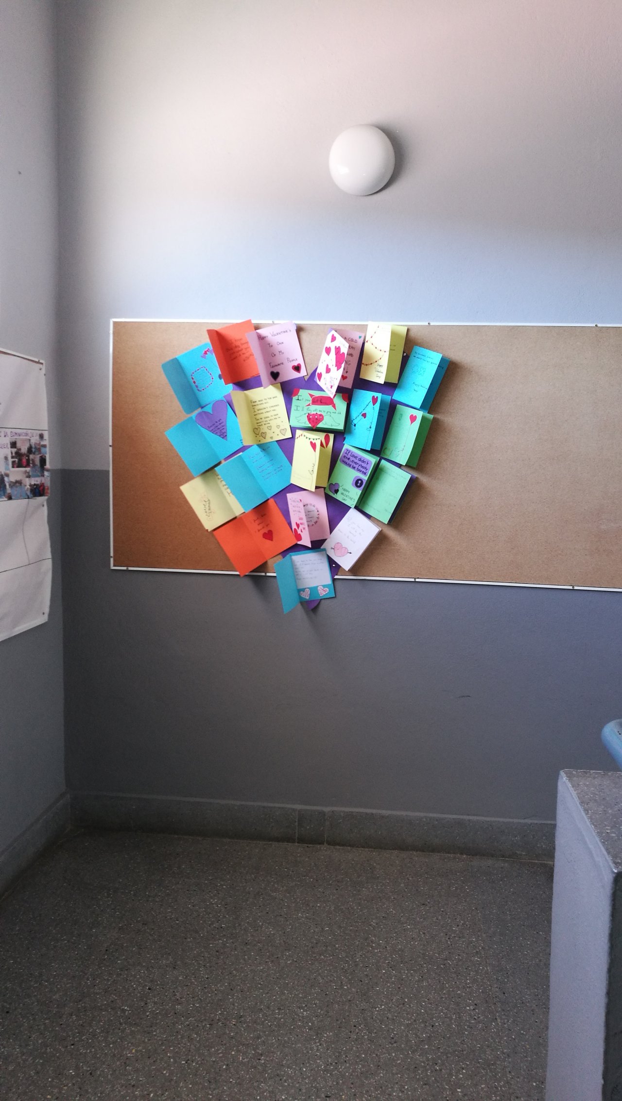 ¡Feliz día de los enamorados! Los alumnos de 4º de ESO realizan preciosas tarjetas para los enamorados que se cuelgan en el pasillo del instituto dentro de un gran corazón.